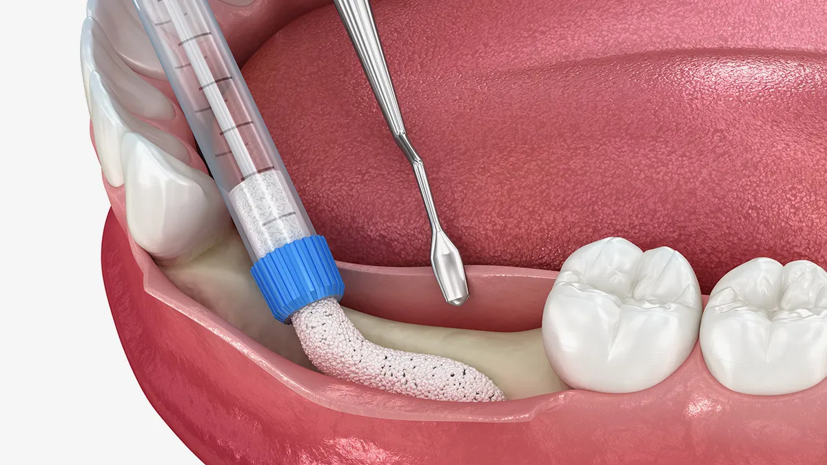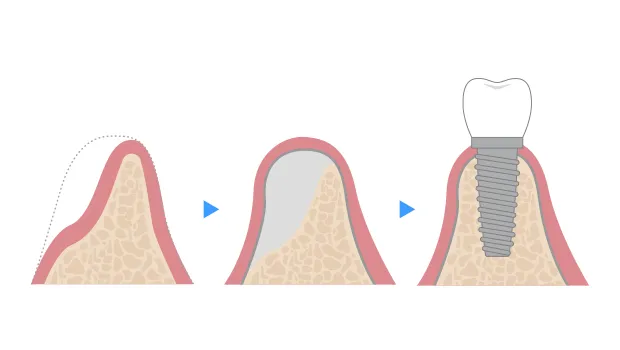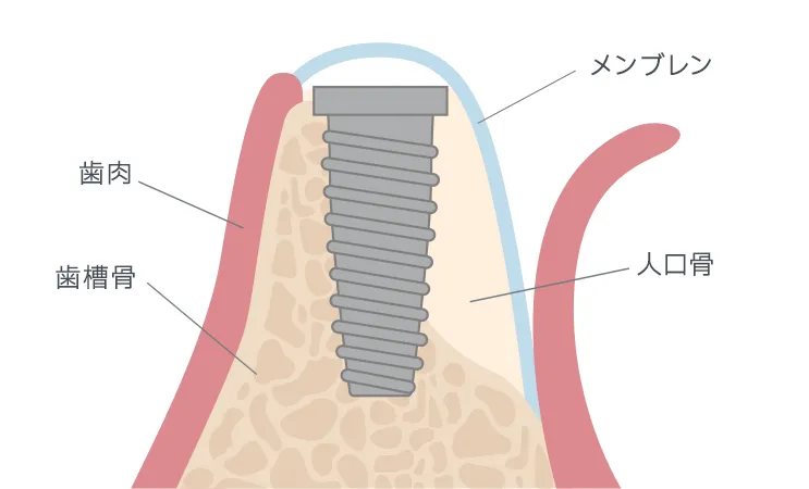 インプラントを支えるのに十分な骨がない場合に、骨を再生・増やすことで土台を整える治療です。専用の膜や骨補填材を用いて骨の再生を促し、時間をかけながら骨を形成することで、骨量が不足している方でも安定したインプラント治療が可能になります。