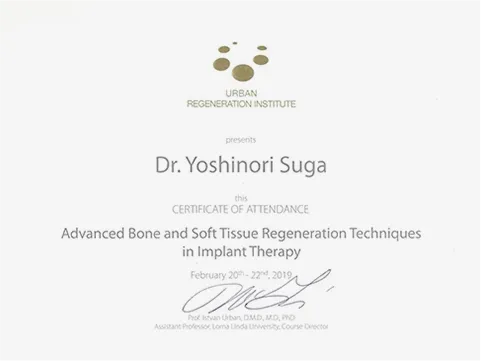 骨造成の執刀は、世界的に著名なスペシャリスト、Istvan Urban先生のもとで、専門的な知識と技術を習得した、理事長・菅が担当します。骨を再生させる骨造成治療は、高度な技術と豊富な経験が求められる分野ですが、当院では安全性と、確実性を重視し、世界水準のインプラント治療をご提供しています。他院に治療を断られた方も、まずはお気軽にご相談ください。