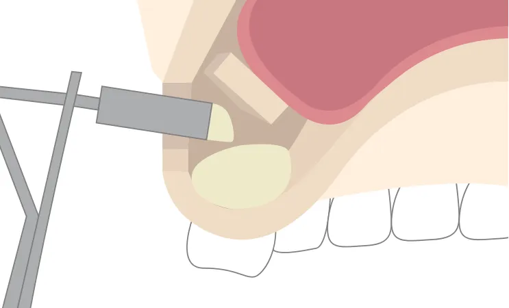 上顎の奥歯にある骨の高さを補う治療法です。歯茎の側からアプローチし、上顎の粘膜を持ち上げて、その下に骨補填材を注入することで骨の再生を促します。