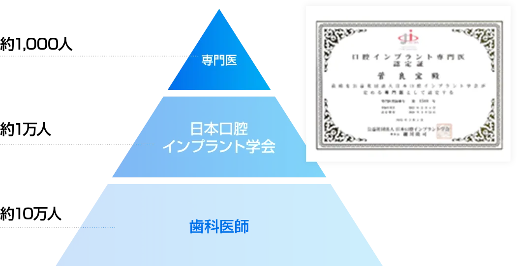 さまざまなトラブルやリスクを伴うインプラント治療には、患者様一人ひとりの骨や健康状態に応じた専門的な診断と高精度な技術が求められます。国内外で研鑽を積む理事長が、より安全で精密な治療をお届けします。骨が少ない、持病があるなど、一般の歯科医院では対応が難しい方も一度ご相談ください。